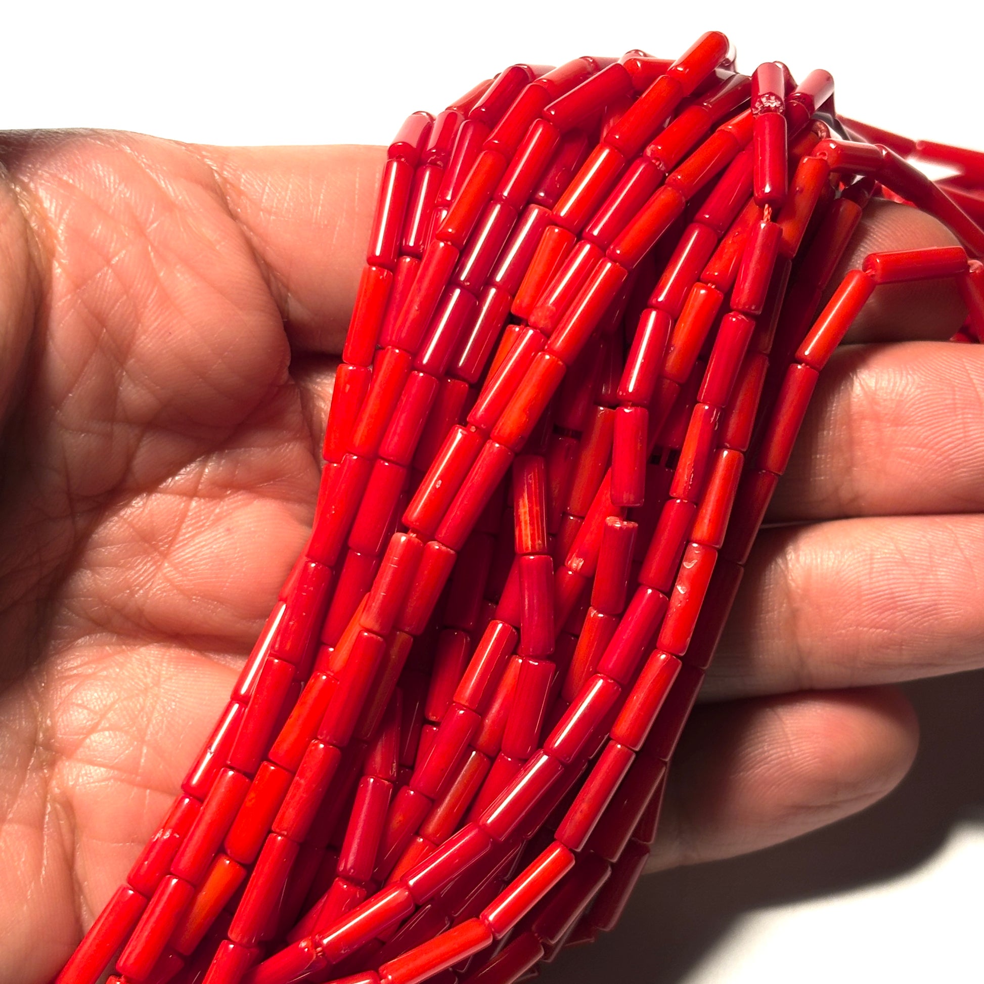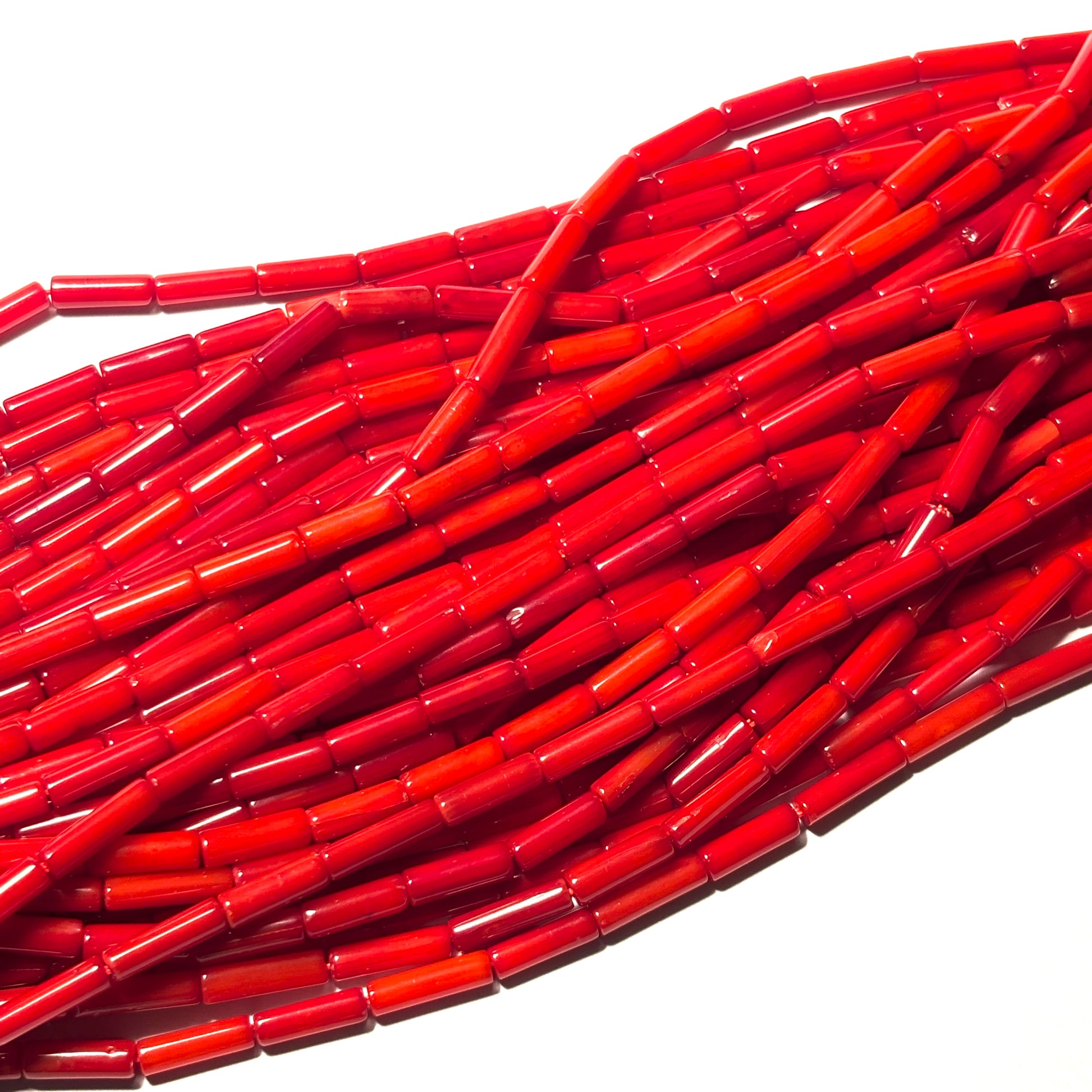Red Coral Column Beads 9mm 16in