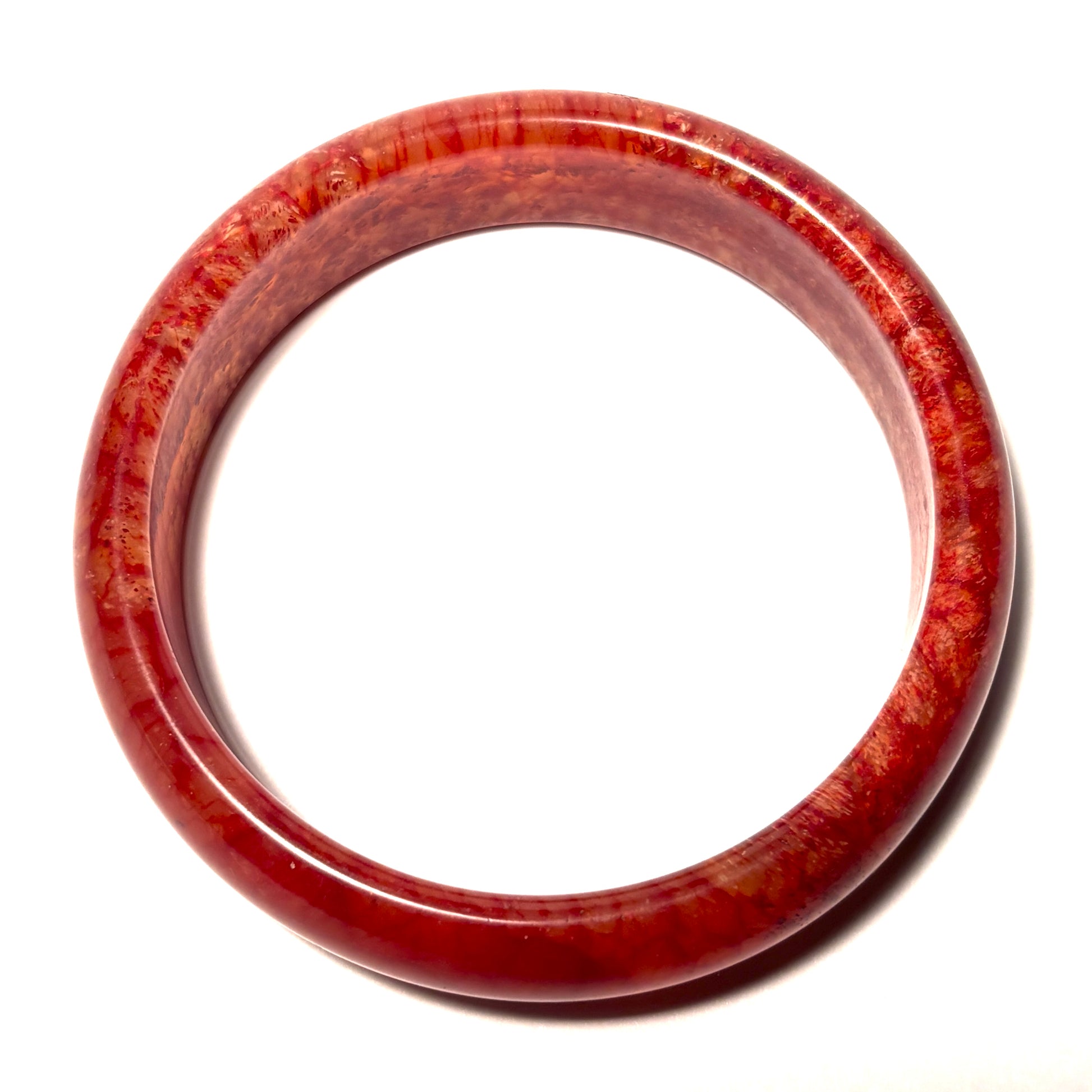 With an inner opening of approximately 60 mm, this solid bangle offers a comfortable fit and a satisfying weight that feels balanced on the wrist. Natural variations in color and pattern make every bracelet one of a kind—no two are exactly alike.