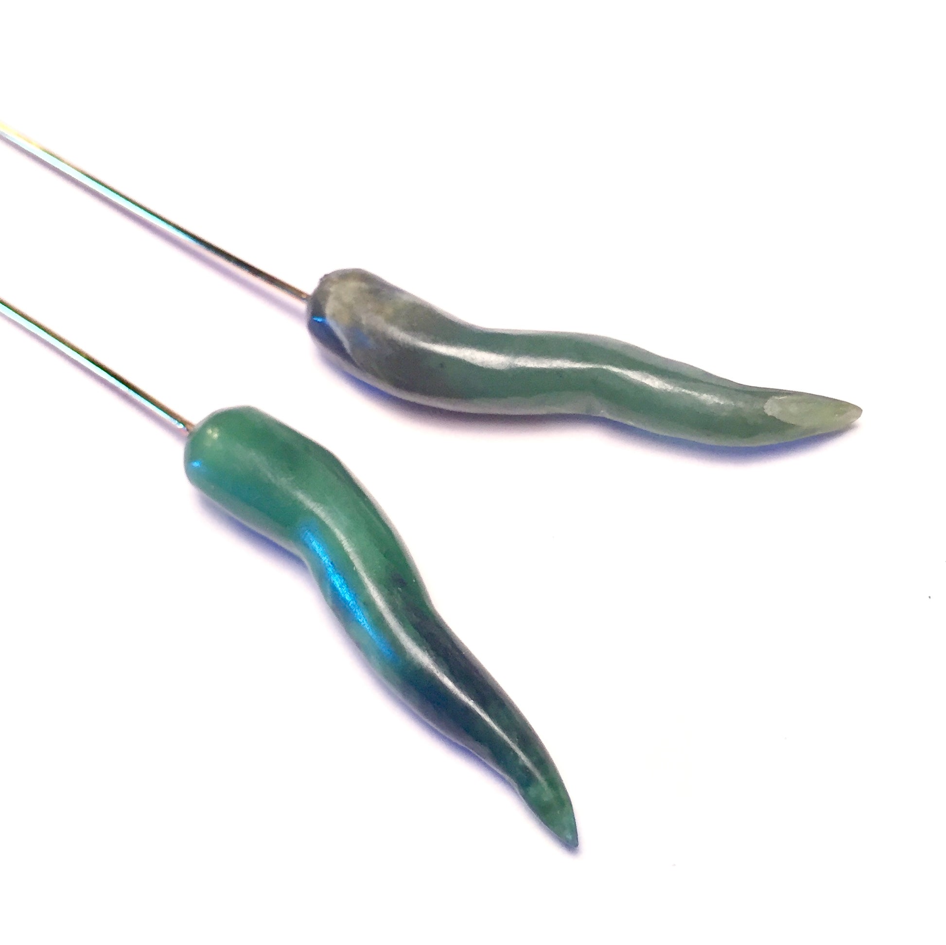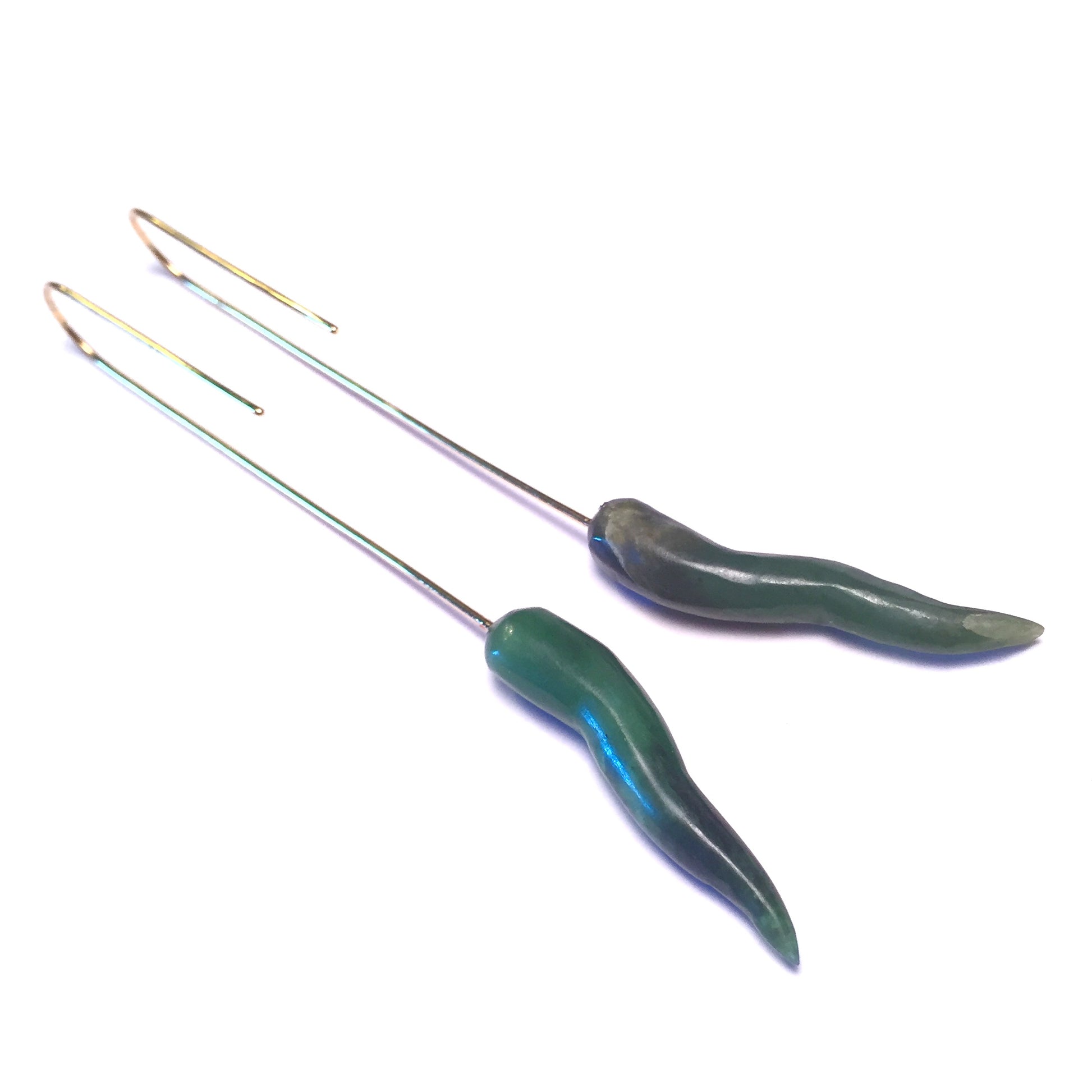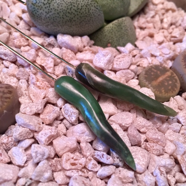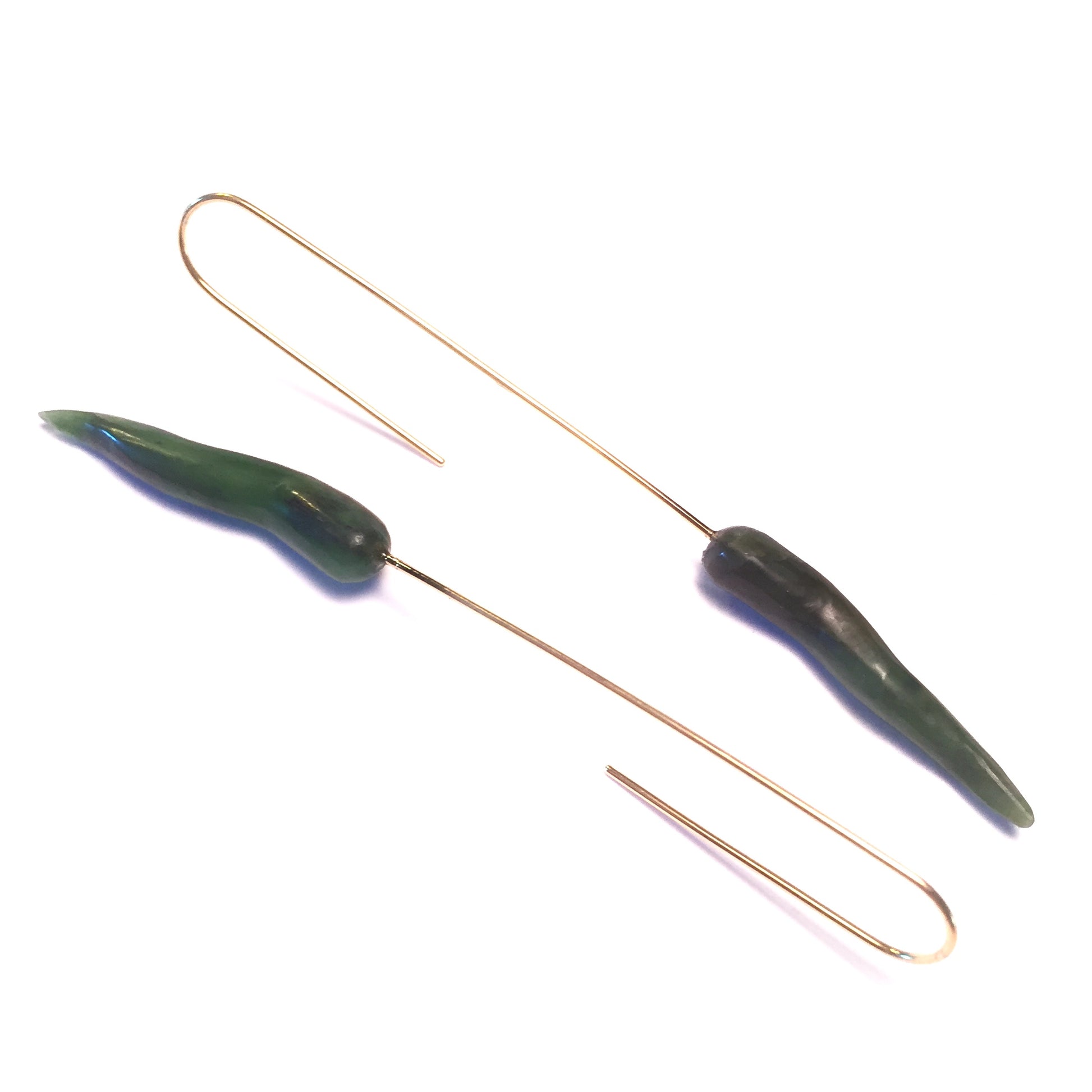 One pair of hand carved vintage jade charm earrings on new 18K gold plated drop hooks.